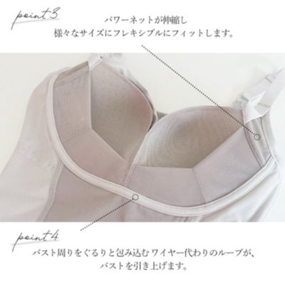 上部はパワーネットを裏打ちした二重構造が背中を面で支えて美姿勢とバストアップをサポートします。