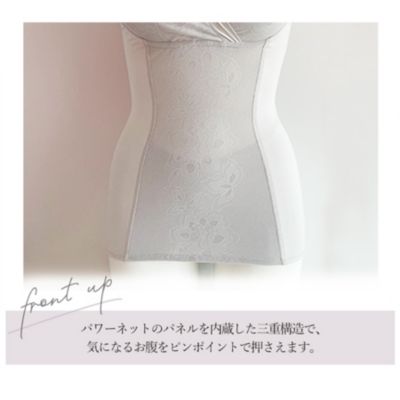 下腹部はパワーネットを内蔵したフロントシェイプパネルでピンポイント補整します。縦方向には伸縮性が良く体の動きに追随しやすくずれ上がりを軽減。