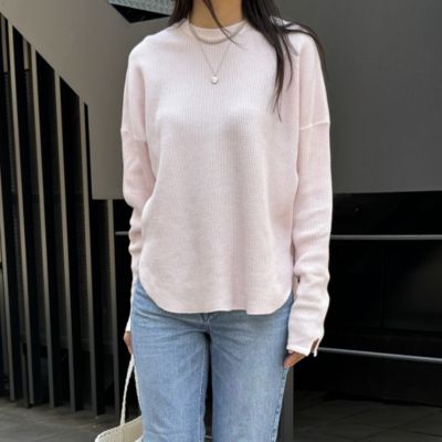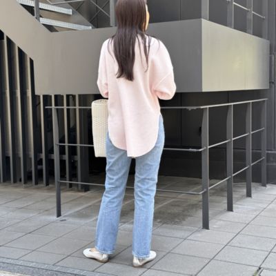 - 肌なじみのいいベビーピンクは別注だけのカラー。小さな切り込みの入った袖や後ろネックのデザインも、さりげなく可愛げにひと役買ってくれるプルオーバー。オーバーサイズでも丈が長すぎず、すそも前後差のあるラウンドカットにすることで、さらっと着てもおしゃれに。