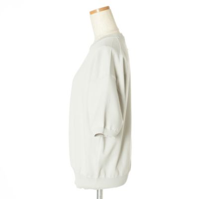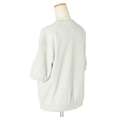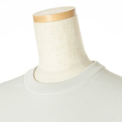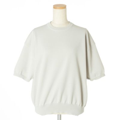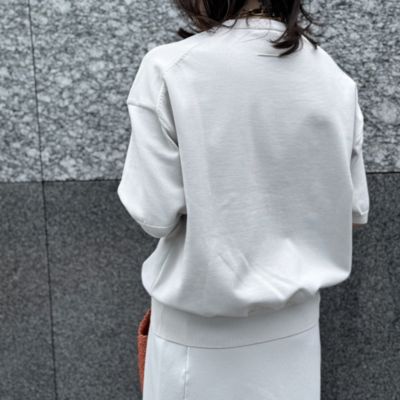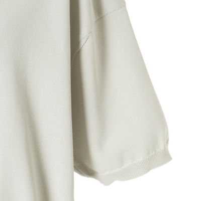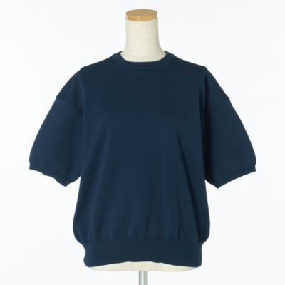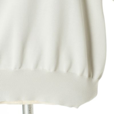 - プレーティングという技法で編み立てられた、表側は抗菌・防臭効果や速乾性にも優れた張りのあるポリエステル、裏側は肌ざわりのいいキュプラ×コットンを使用。湿度が高い季節もストレスなく着られるのがうれしい。立体的なフォルムでスタイルアップがかなう。