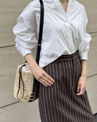 - リネン混のネップ素材でさらりとした軽やかな着心地。ブランドでの展開はパンツとジャケットのみで、スカートはMarisolだけの別注。ウエストが後ろゴム仕様なので、きれい見えするのに楽ちんなのも魅力。