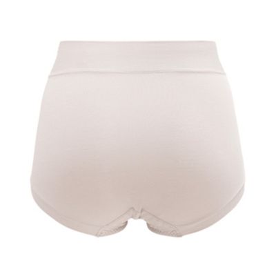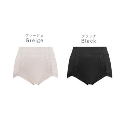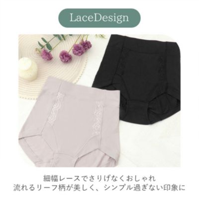 - 光沢落下板の細幅レースをフロント両サイドに配した、上品な補整ショーツです。流れるリーフ柄がさりげない存在感を放ち、すっきりとした印象に仕上げました。