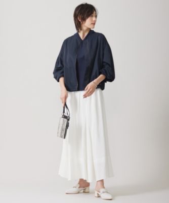 シャツ感覚でさらっと羽織れるブルゾン■デザイン程良いボリューム感と短めの丈がポイントのジップアップブルゾンです。裾のドローストリングでフォルムに変化をつけられるデザインで、ボトムを選ばず、シャツ感覚で軽く羽織れる便利なアイテムです。■素材天然素材のようなソフトな風合いの光沢感の少ないフルダルナイロンを使用し、ワッシャー加工を施すことでカジュアルな表情に仕上げたツイル素材を使用しています。■機能性1)Washableご自宅でお洗濯可能なのでデイリー使いにぴったりです。2)UVカット紫外線を防いでくれるのも嬉しいポイント。3)接触冷感ひんやりとした爽やかタッチの素材で快適な着心地。4)撥水加工※商品の取り扱い方法につきましては、タグ等に記載されている「取り扱い上の注意」「洗濯表示」をご確認ください。※採寸情報はサンプル商品のデータです。実際の商品と仕様が異なる場合がございます。※商品画像はサンプルを使用しているため、実際にお届けする商品と色味やサイズなどの仕様に変更がある場合がございます。予めご了承ください。